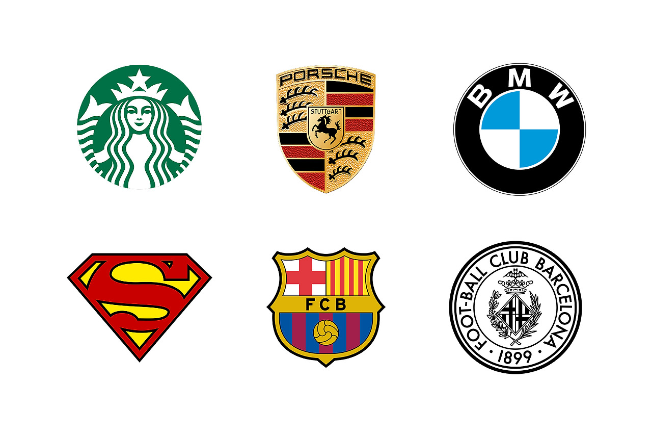 - 도형이나 배지 형태의 틀 안에 브랜드명과 심볼을 결합한 디자인