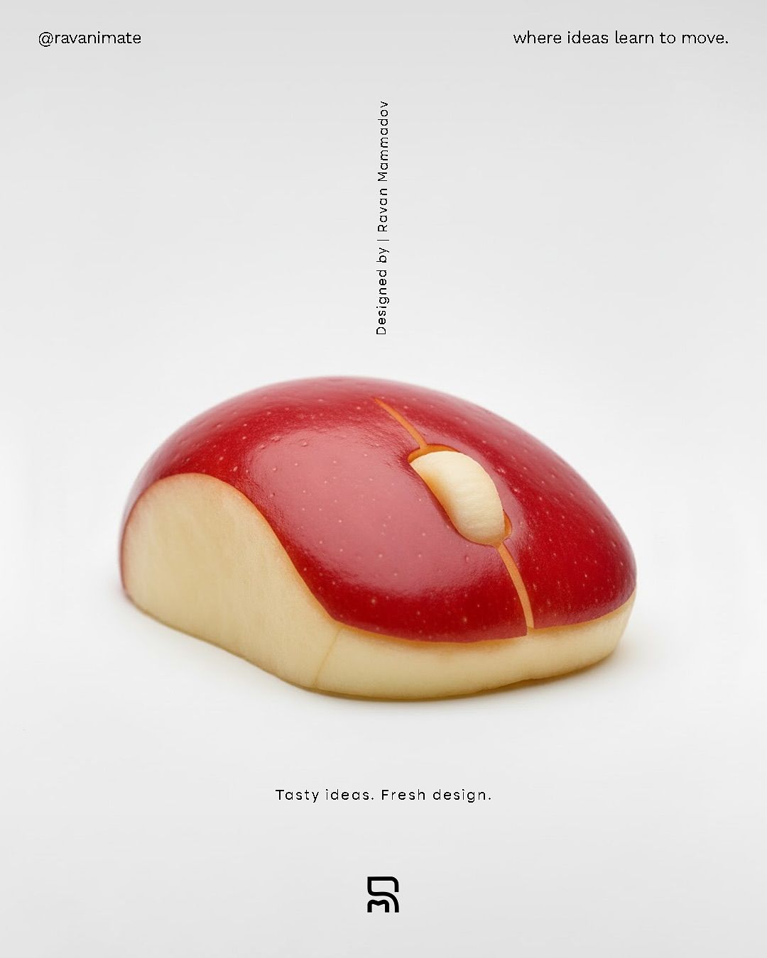 → 사과 마우스 > 마우스 아래 텍스트 > 중앙 세로 텍스트 > 하단 로고 > 상단 텍스트