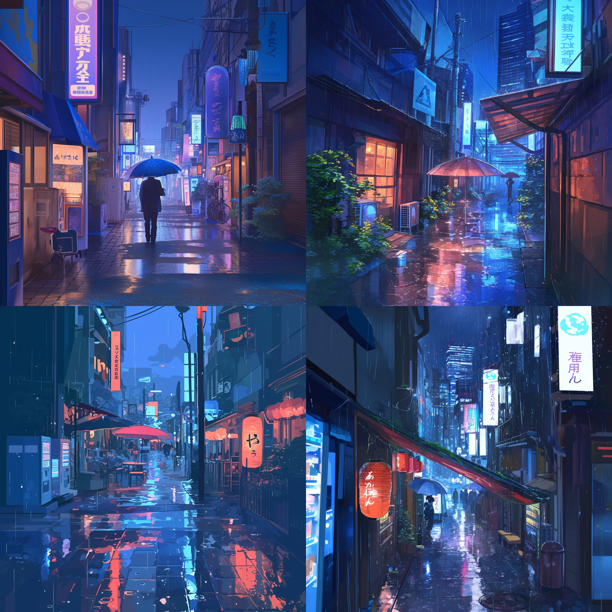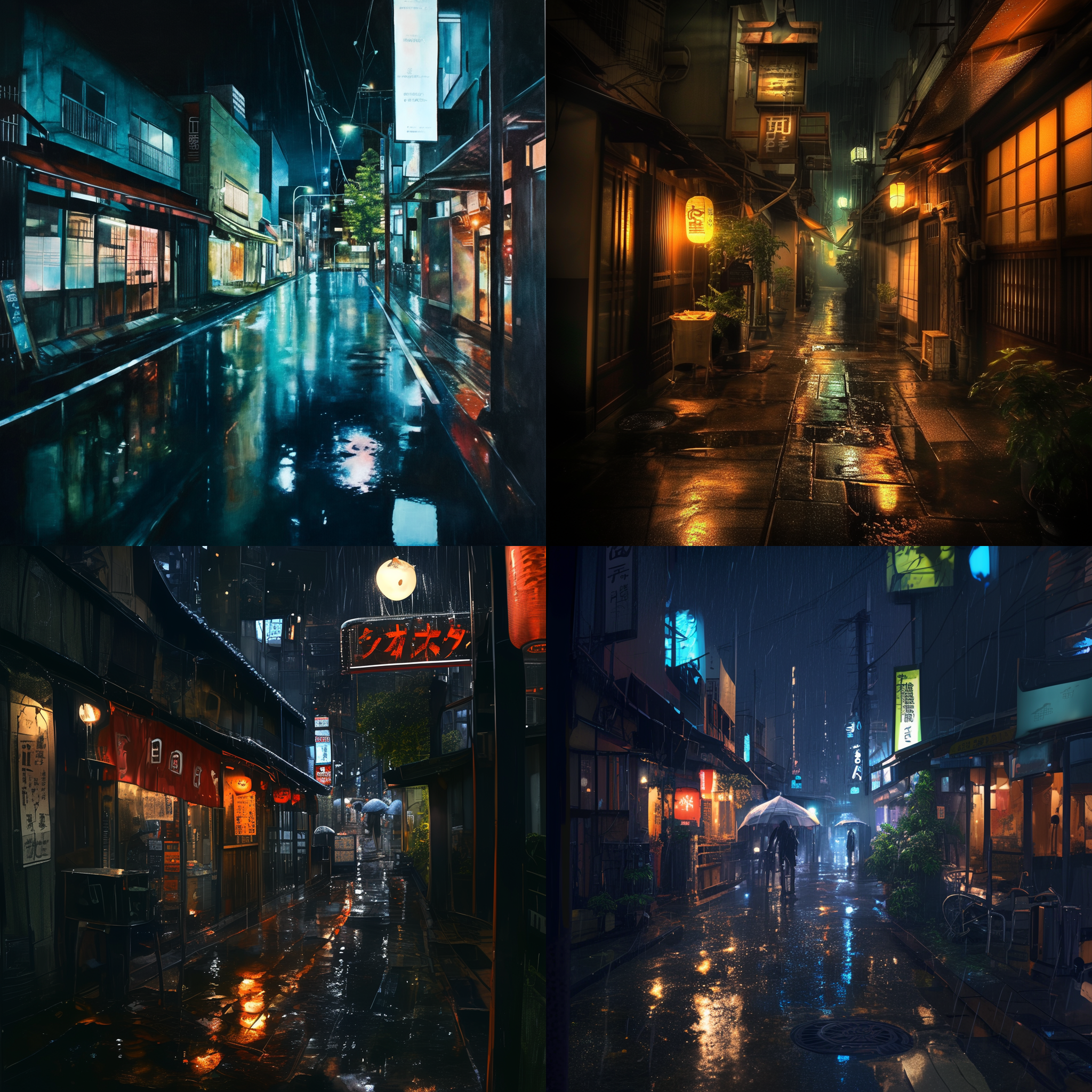 - 프롬프트 : a quiet street in Tokyo at night, raining --niji 6