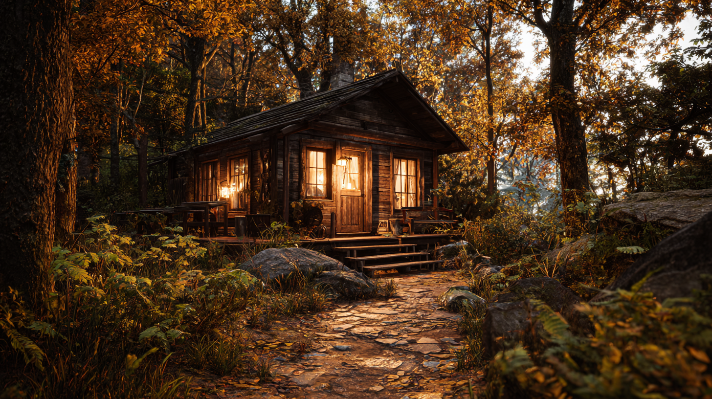 - 프롬프트 : a cozy cabin in the forest, in autumn, warm lighting --ar 9:16