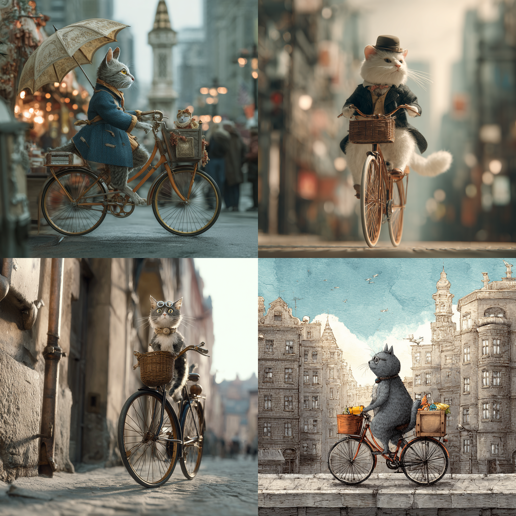 - 프롬프트 : a cat riding a bicycle in the city --weird 0