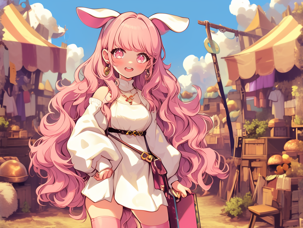 - 프롬프트 : young female warrior at the market, full body, cute --ar 4:3 --niji 6 --cw 100 --cref url